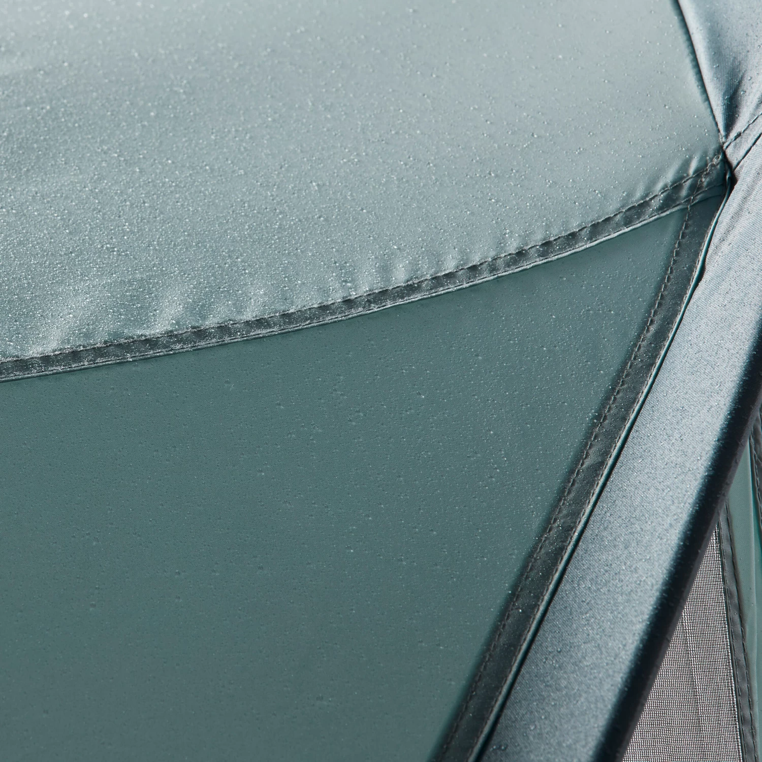 Our team of enthusiasts has eco-designed this 4 person shelter to insulate you from the ground, shelter you from the sun, wind or light rain.Spend time with the family in the great outdoors, this shelter protects from the sun (UPF 50+), pitches and dismantles easily. Free-standing, suits all types of terrain and easy to move.
