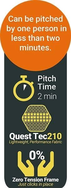 The Instant Utility is a multi-function, quick erect tent that uses the zero tension frame to enable it to be pitched by one person in less than two minutes.