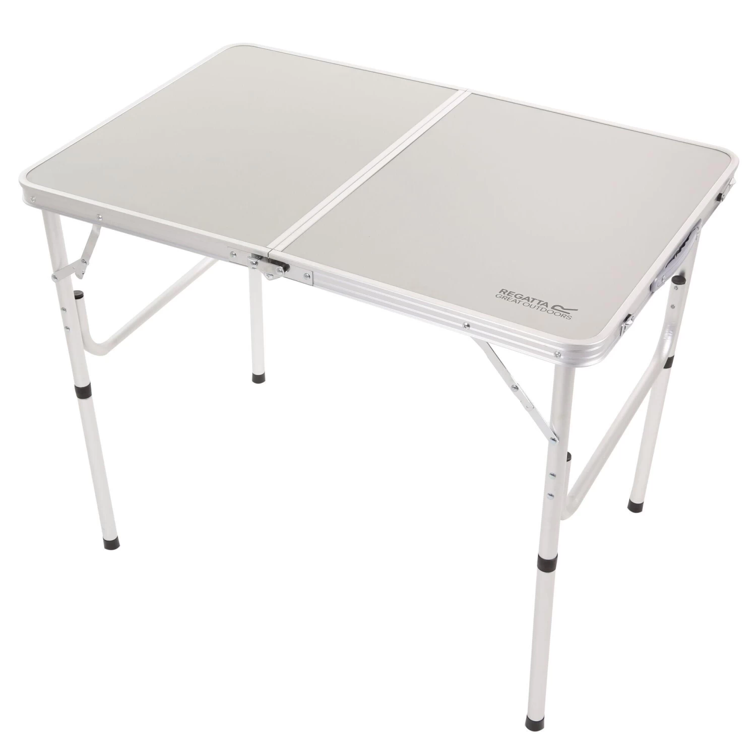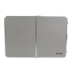 Lightweight and sturdy camping kitchen table with compact bi-fold design. For campsite dinners or barbeques and parties at home.