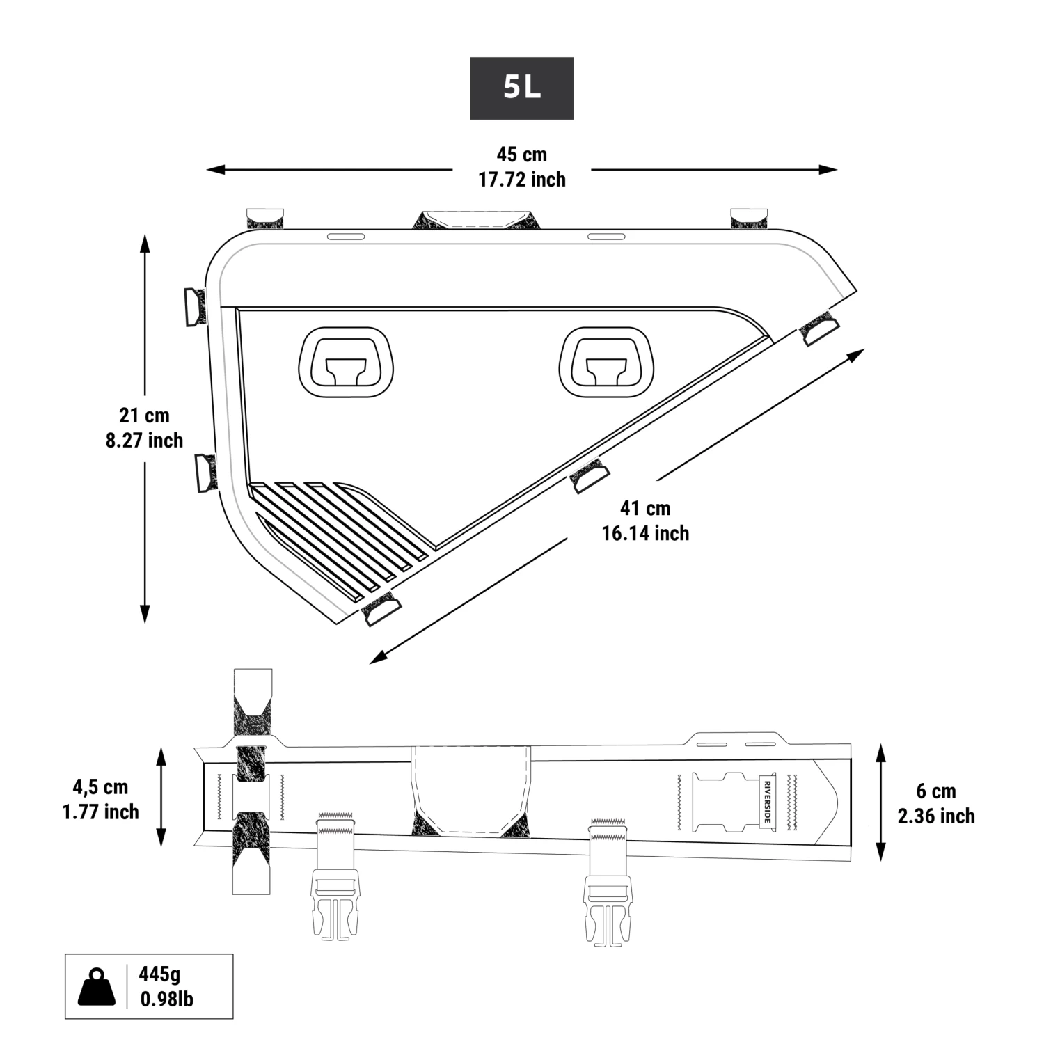 Dimensions: 45 (top tube) x 21 (down tube) x 7.5 (width) cm