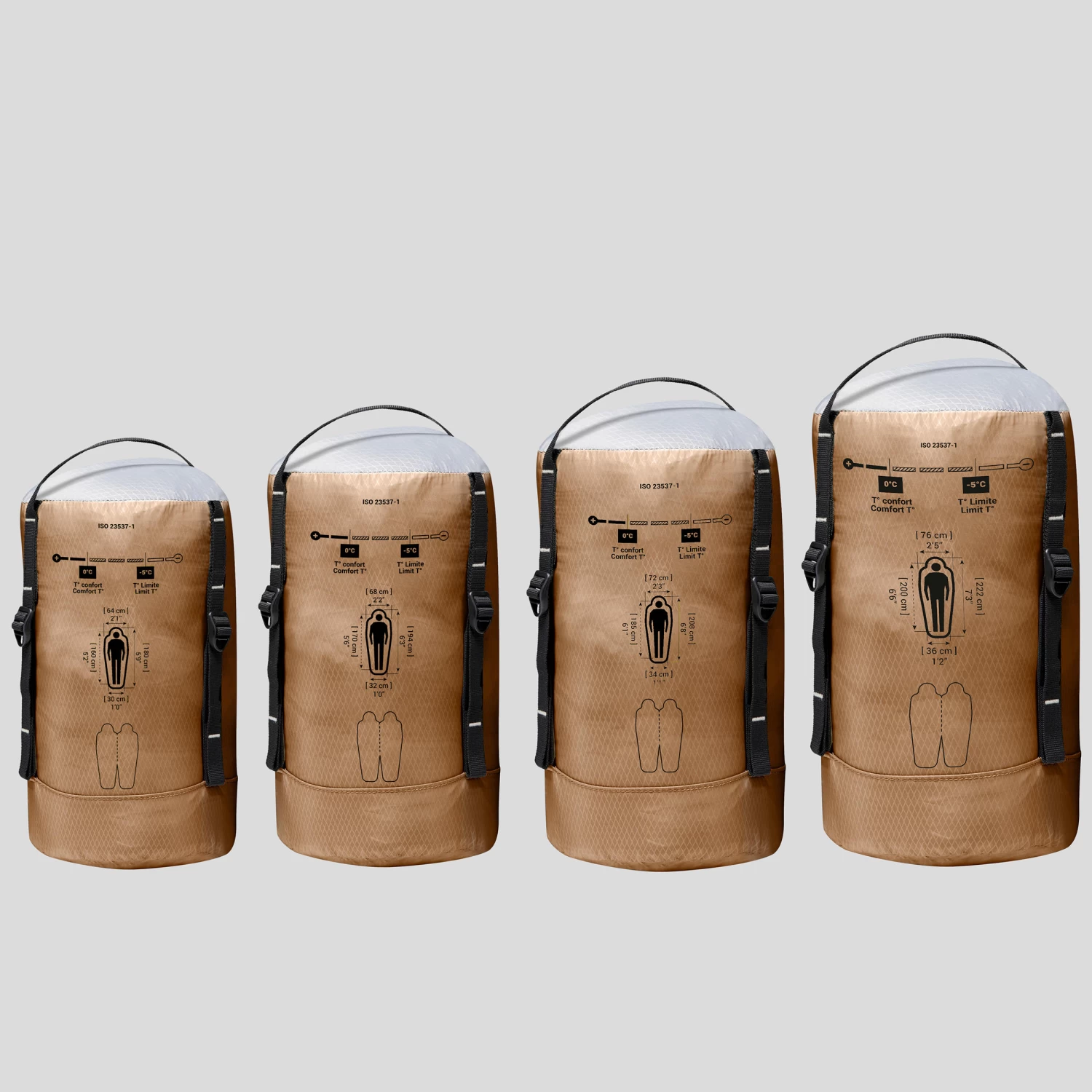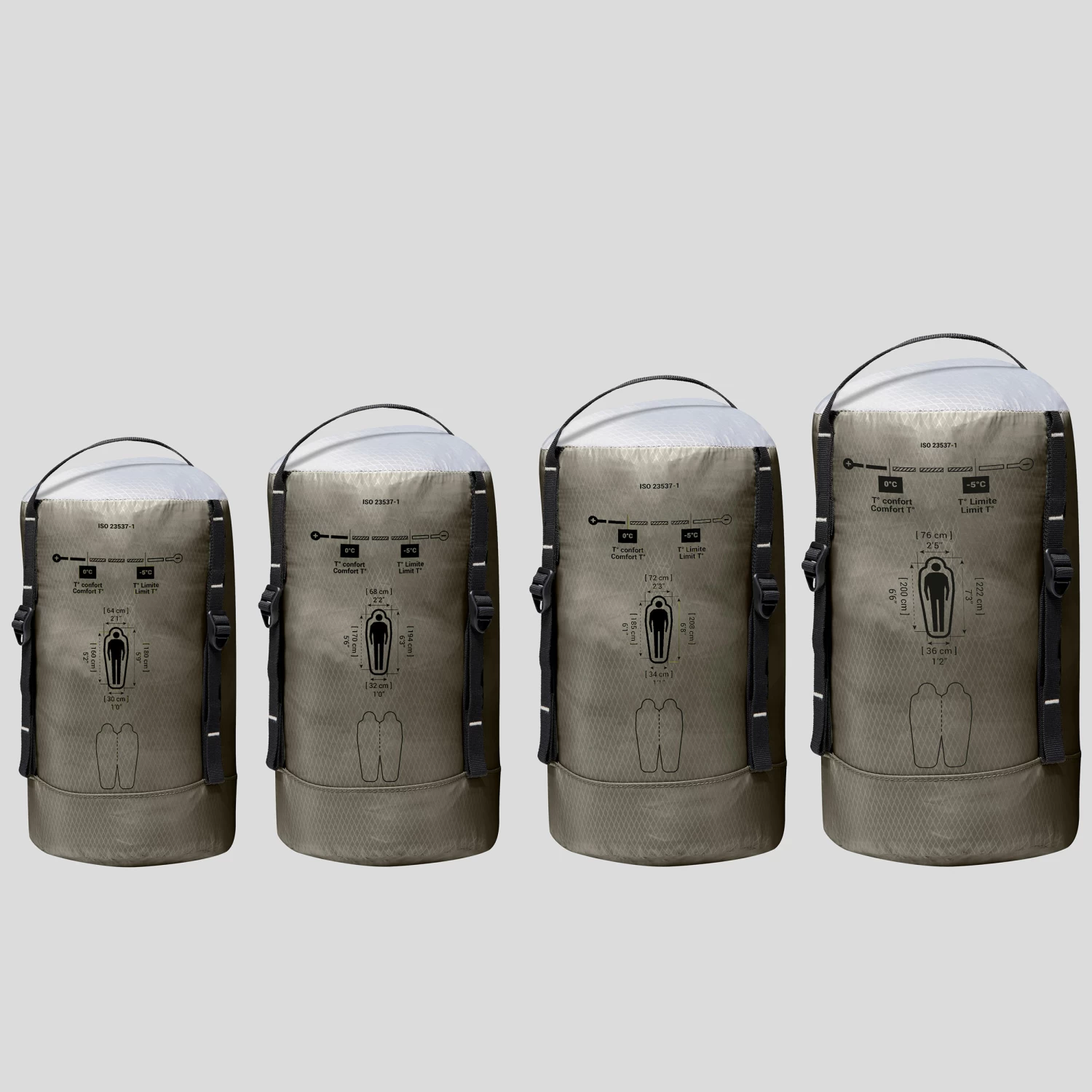 We display the comfort temperatures on all our sleeping bags, tested by an independent laboratory (AITEX) in compliance with European standard ISO 23537-1:2022. The comfort temperature rating is the lower limit at which the user in relaxed posture is generally in thermal equilibrium and feels neither too cold nor too hot (for a standard woman in normal conditions of use). Choose your sleeping bag according to this criterion.