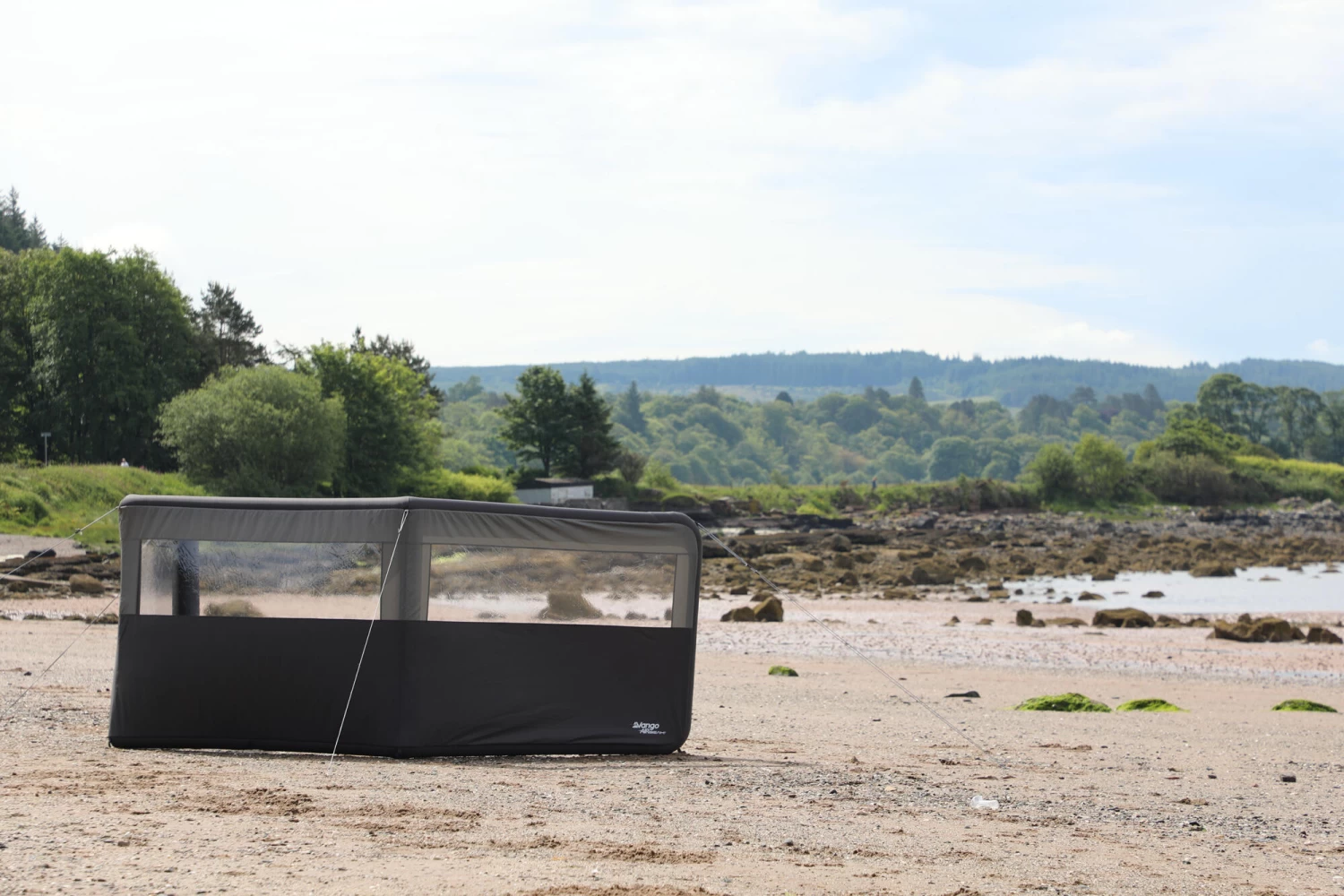 The Sentinel Airbeam Windbreak provides a shield from wind on the campsite to ensure meals and play time are not interrupted by the weather.
